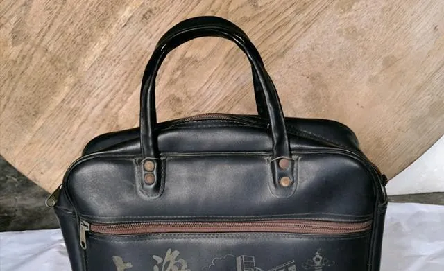 这只黑面儿的是人造革手提包,上面烫着“上海”二字和小楼图案,拉链一拽“嗖”地响,爸爸骑凤凰牌车,我坐前杠,他一手提包一手扶把,办事回来把包往炕头一放,耐用是真耐用。