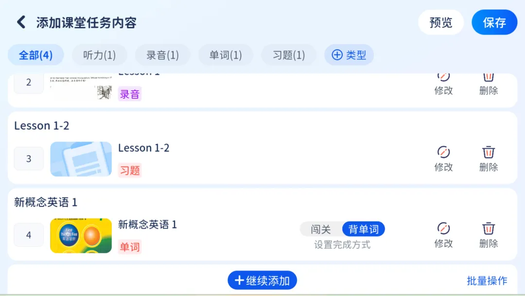 布置单词闯关打卡