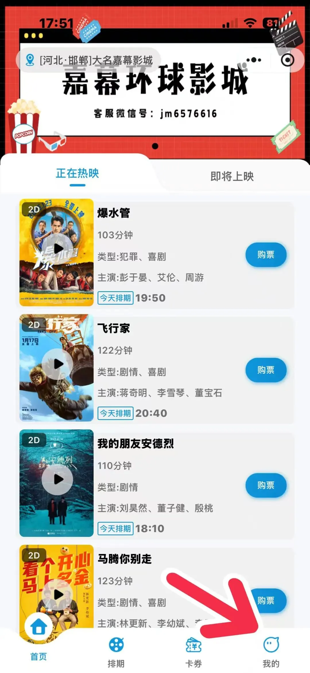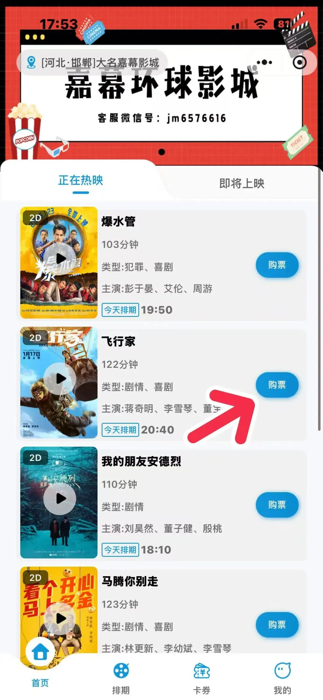 5.返回首页选择想看的电影 点击购票