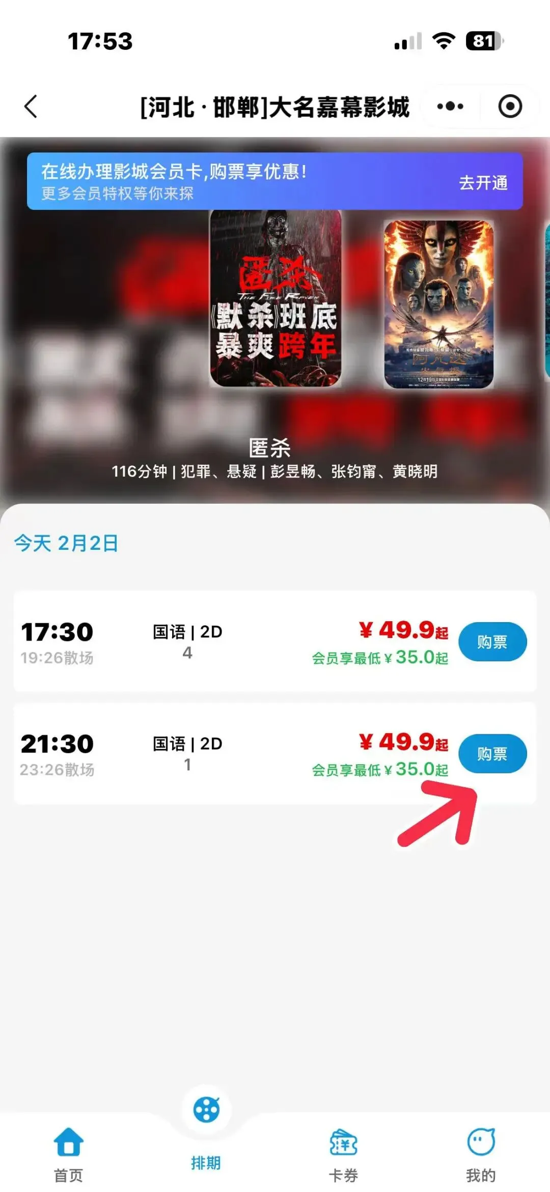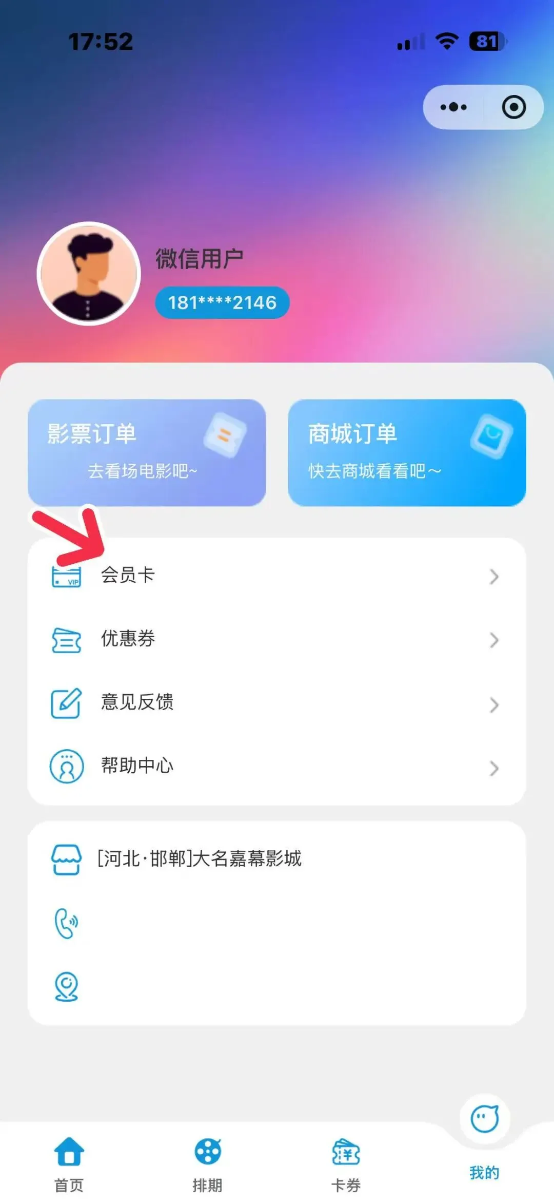 小程序会员卡购票流程