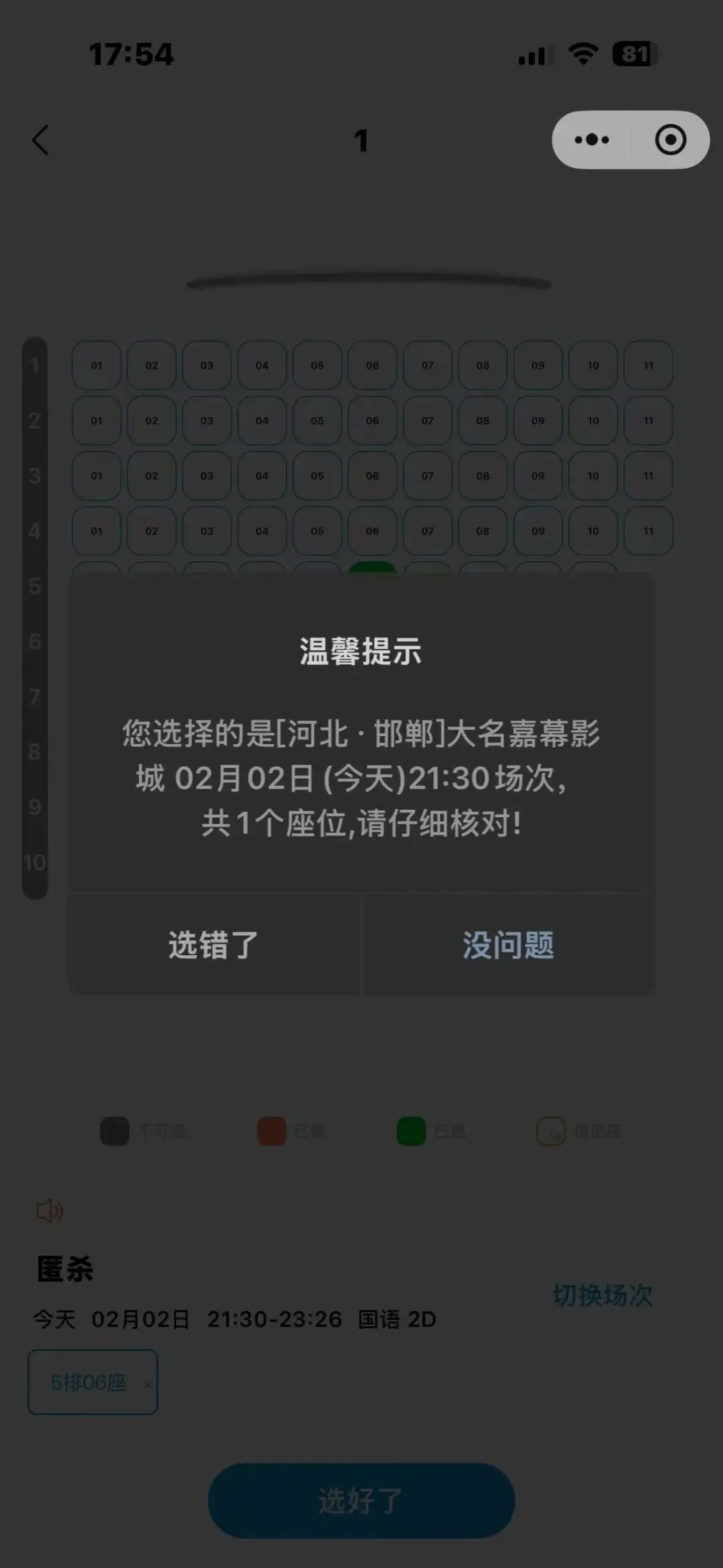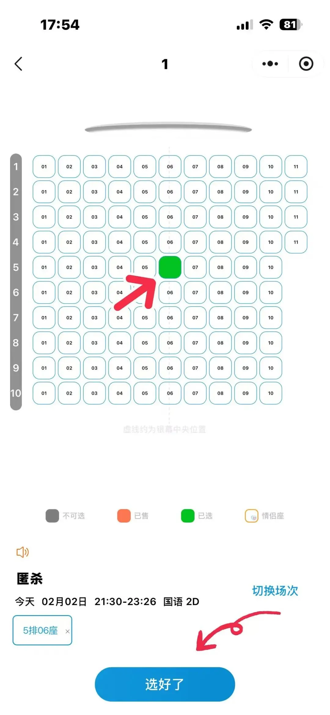 7.先选择座位 选好后点击选好了