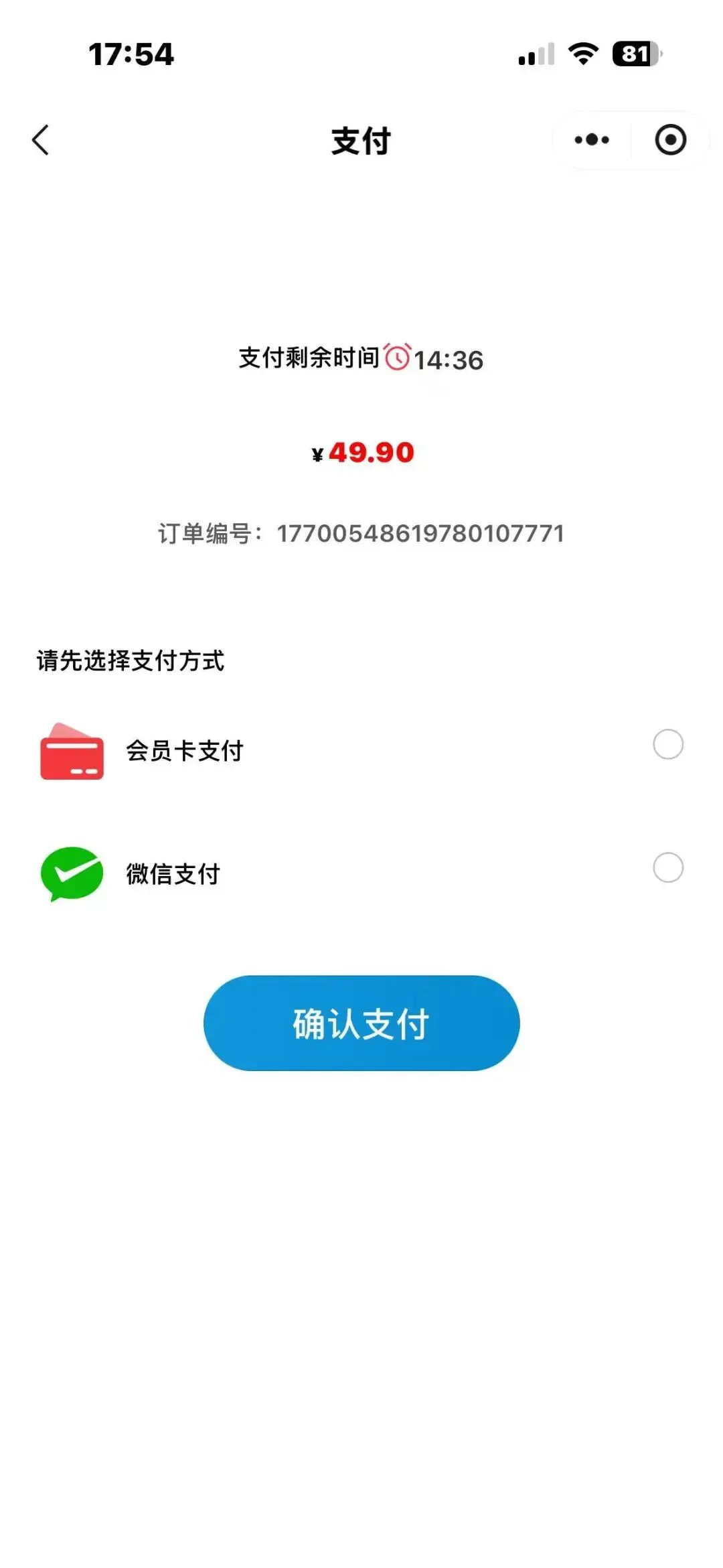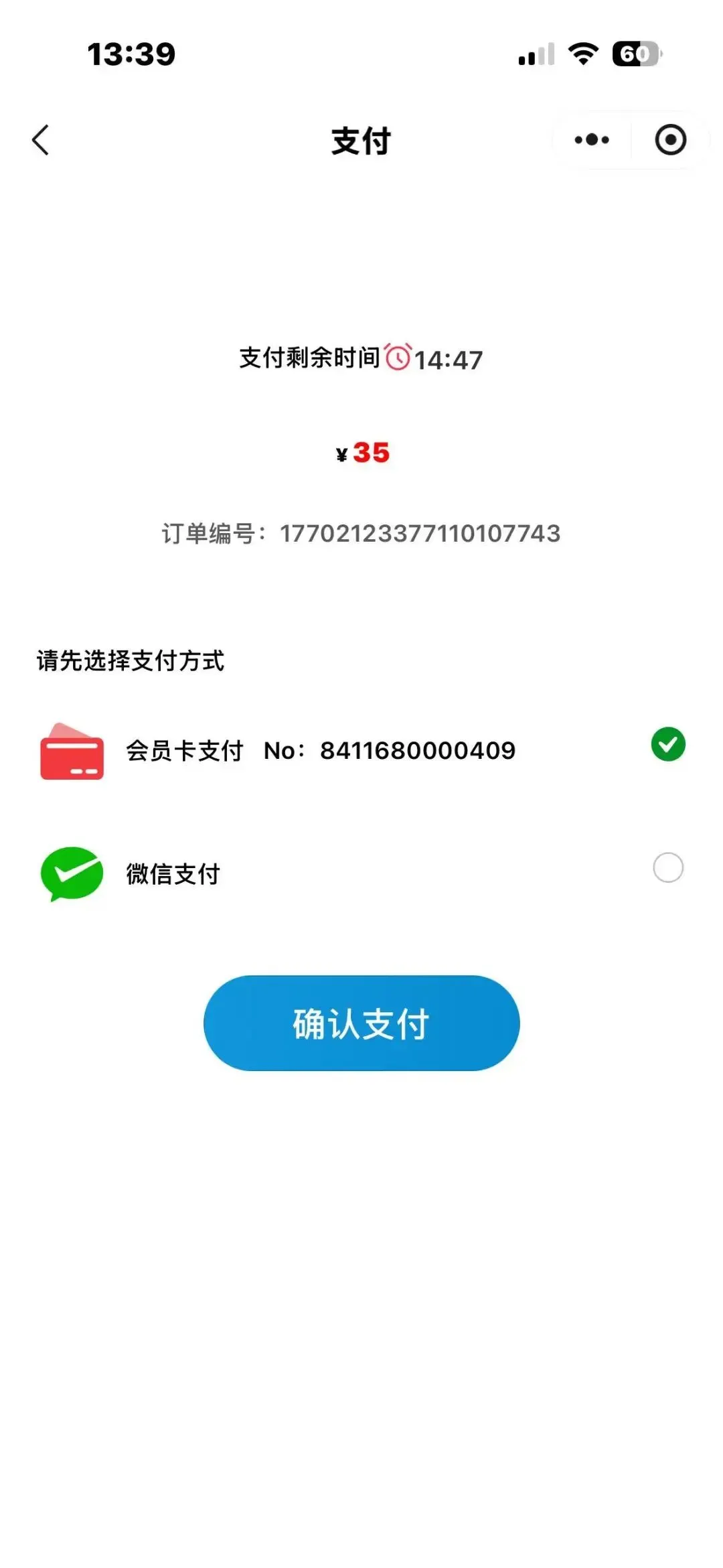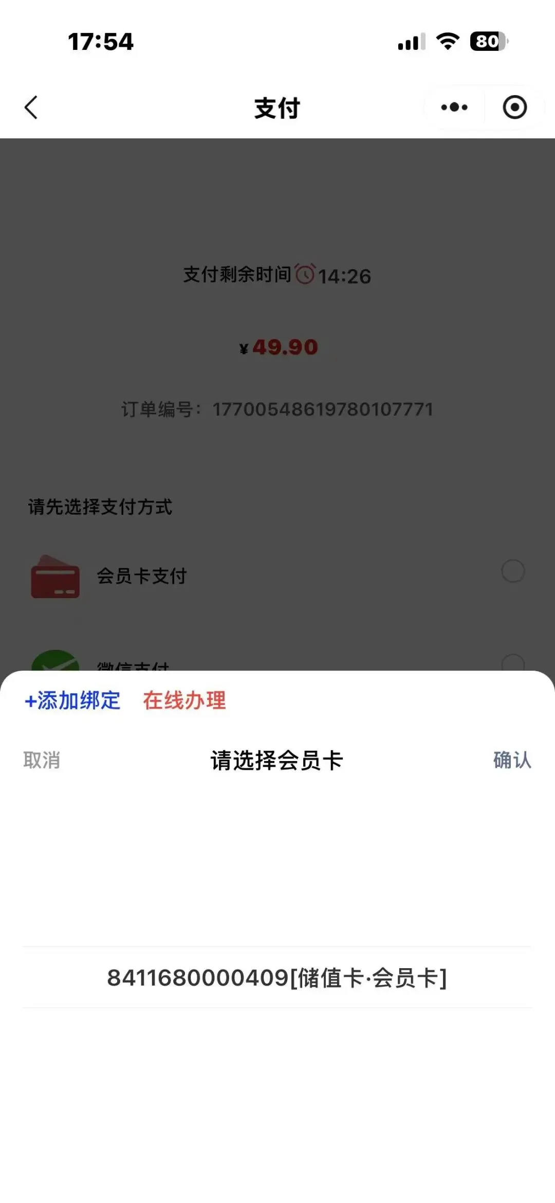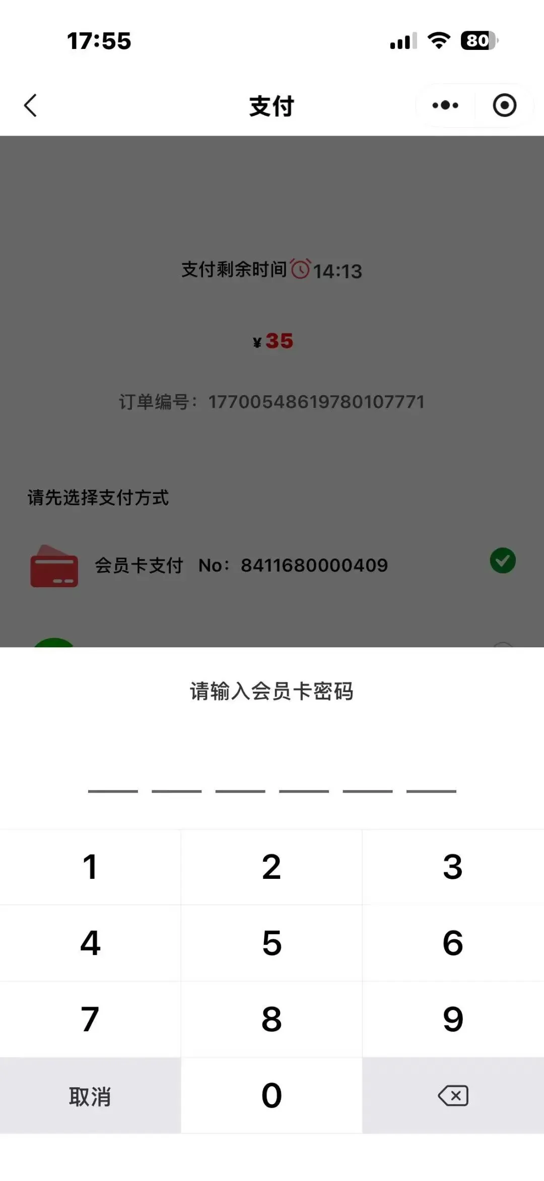 9.选择会员卡支付