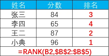 书写规则:=rank(排名对象,排名的数据区域,升序或者降序)