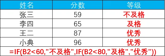 题目要求:成绩<60显示不及格,成绩在60-80间显示及格,成绩>80显示优秀。