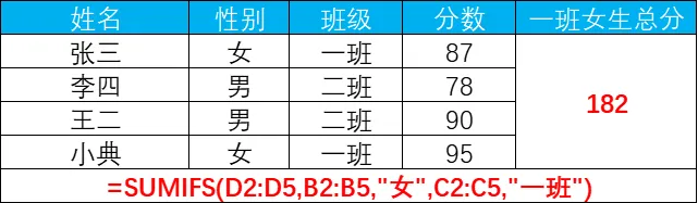 书写规则:=sumifs(求和区域,条件区域1,条件1,条件区域2,条件2)
