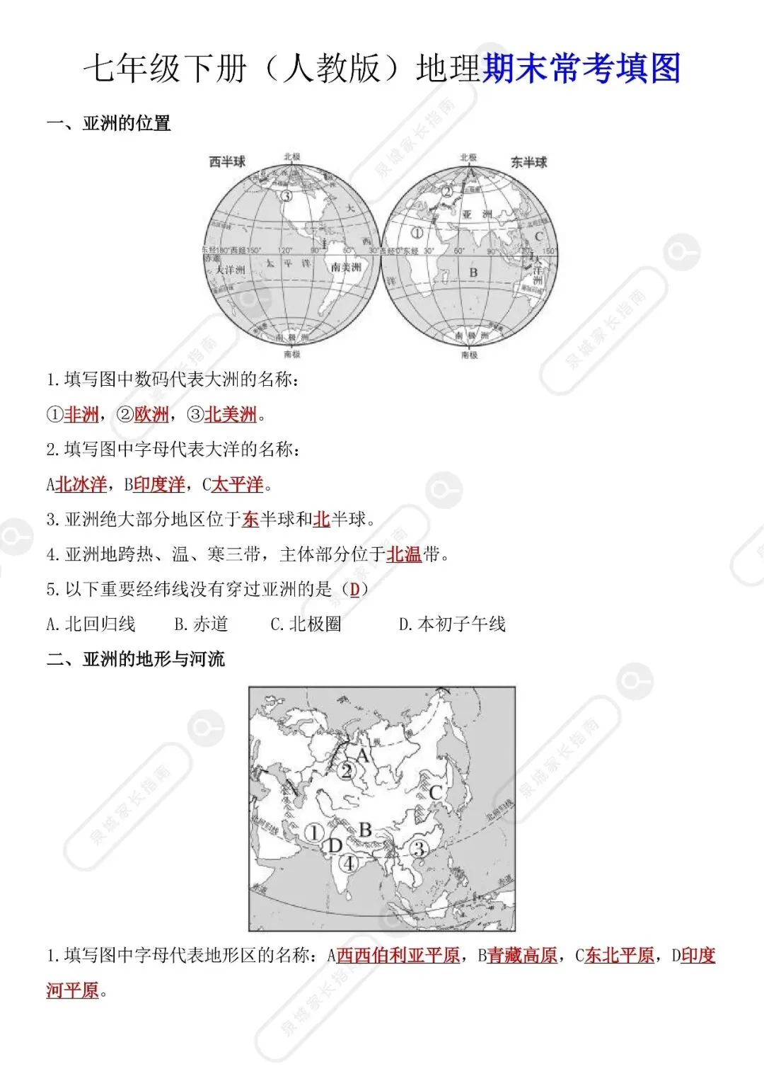 ↑↑↑点击上方蓝字,关注公众号:泉城家长指南,及时获取中考升学资讯今日资料分享——七下地理期末常考填图题,提前收藏,考试前可以打印出来复习背诵。| 文末有电子版领取方式~……完整电子版领取方式↓↓↓– End –扫码↓↓进初中家长家交流群获取最新——中考政策、初中考试真题资料、高中选拔新消息如果家长朋友们,对于济南中考升学政策还不了解或者对于相关学校信息了解方面存在疑问,对于孩子未来升学不清楚选什么途径更合适,可以报名下方1v1规划:安安老师会给大家进行政策讲解和初升高规划指导,孩子进行学情诊断,赠送一本初升高指导手册,根据孩子的成绩、特点和意向,助您合理规划孩子的升学途径,明确备考方向,找对适合孩子的升学路!