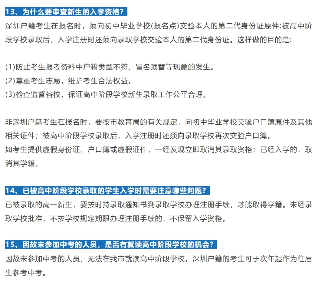 本文参考2025年深圳中考《考生报考指导手册》,整理了中考录取的常见问题及官方解答,新初三可以先了解收藏,等新政策出来如有变化,重点关注调整部分即可(ps:每年政策变化不大)。