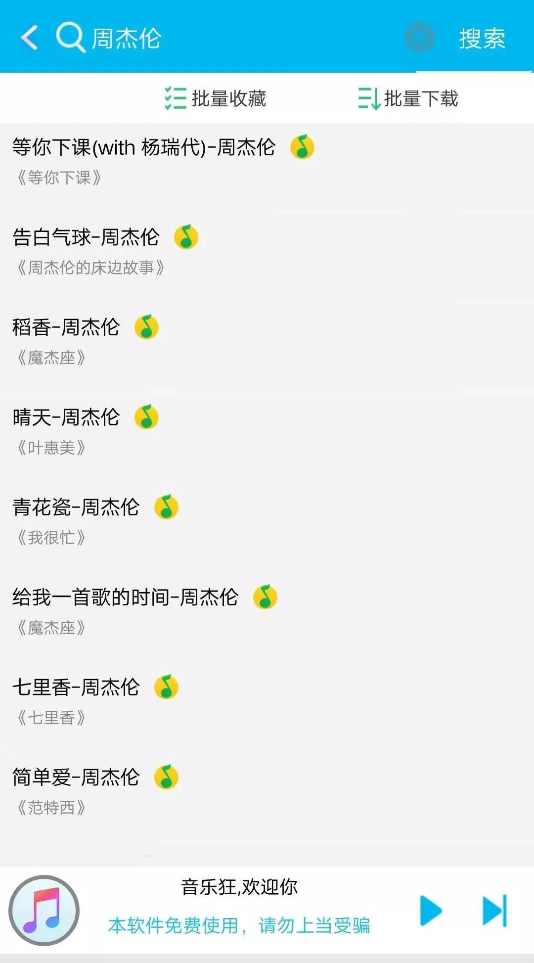 这时软件会让你选择从哪个平台搜索来源,周杰伦肯定是腾讯的啊,那就选 QQ 音乐。