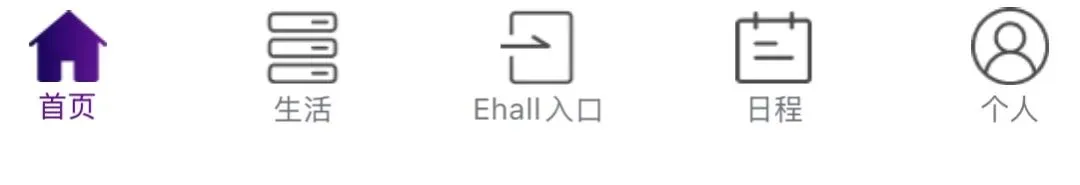 App整体分为首页、生活、ehall入口、日程、个人五大板块,下面快和酱酱来探索这些板块吧~