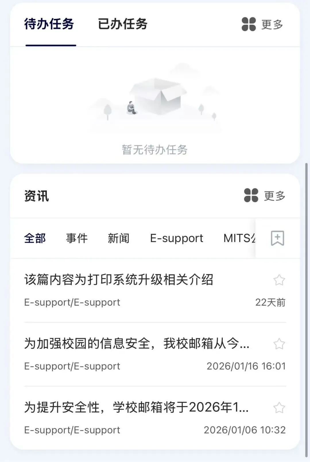 同学们可以在该界面全APP搜索,查看日程、任务和学习生活资讯。