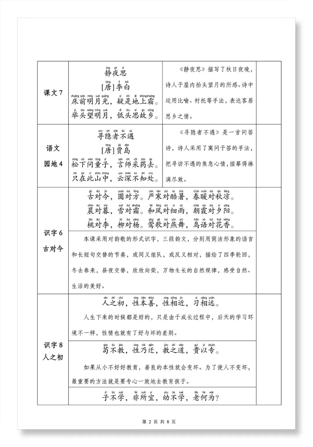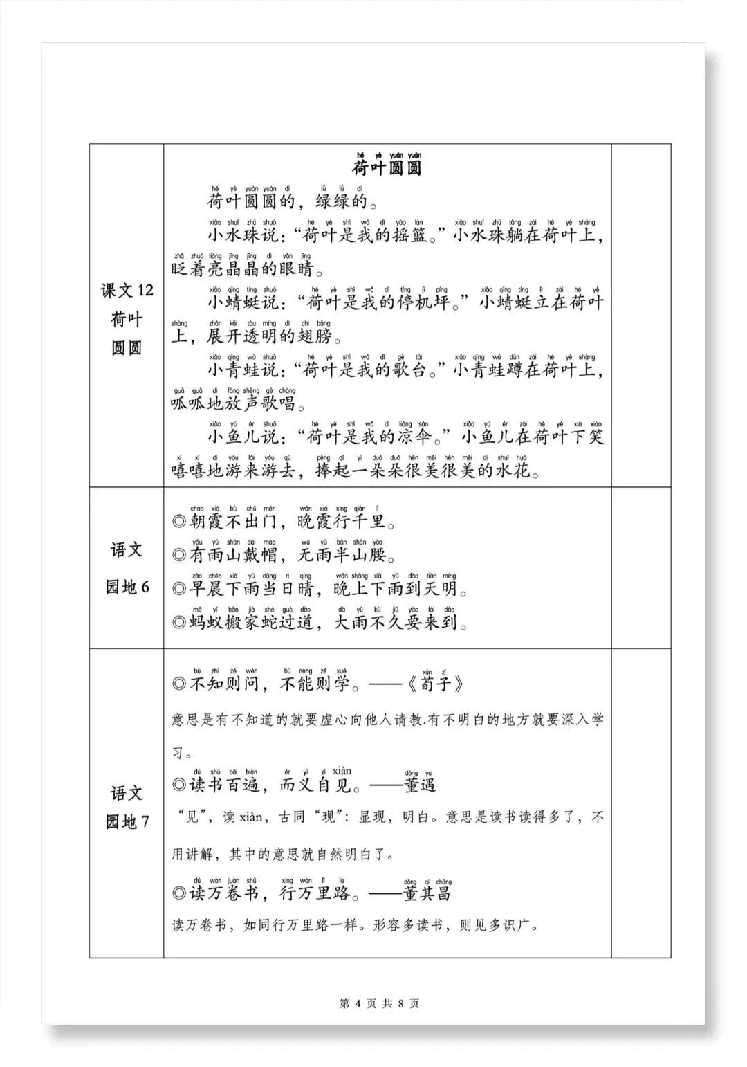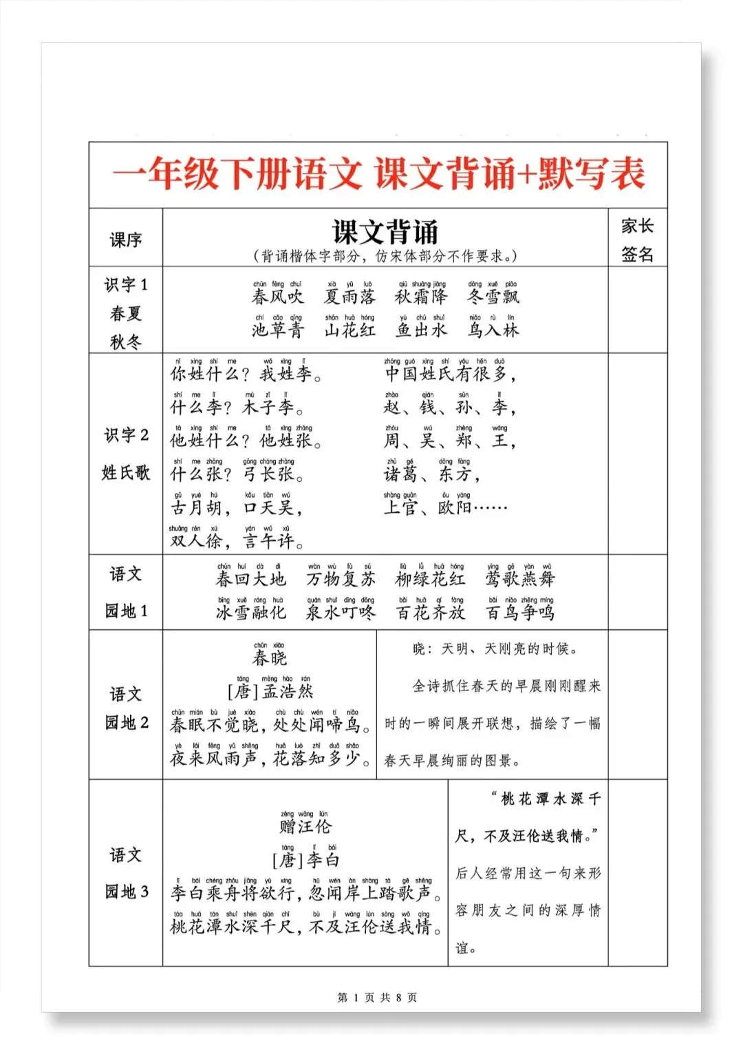 一年级下册语文,课文背诵+默写表,电子版可打印!