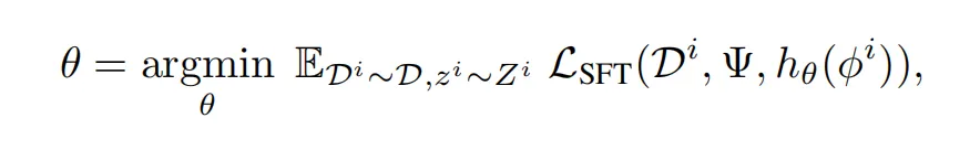 第二种 SFT 端到端模式打破了这一局限。该模式不依赖中间目标参数,直接基于 479 个多任务数据集进行优化。其正式的数学优化目标为: