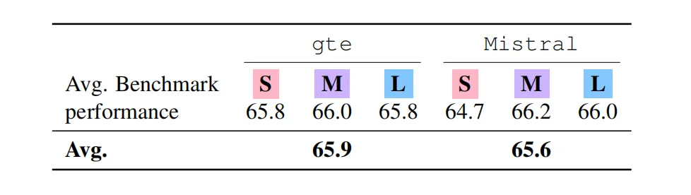 此外,消融实验表明,即使更换底层的文本 embedding 模型(从 gte-large 切换为 Mistral 原生 embedding),Text-to-LoRA 依然维持着稳定的自适应性能。