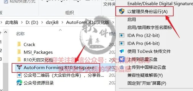 3.右键管理员身份运行Auto Form Forming R10 Setup.exe程序;
