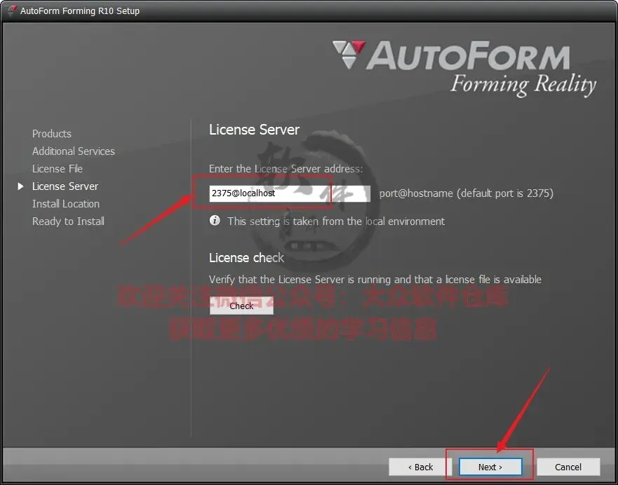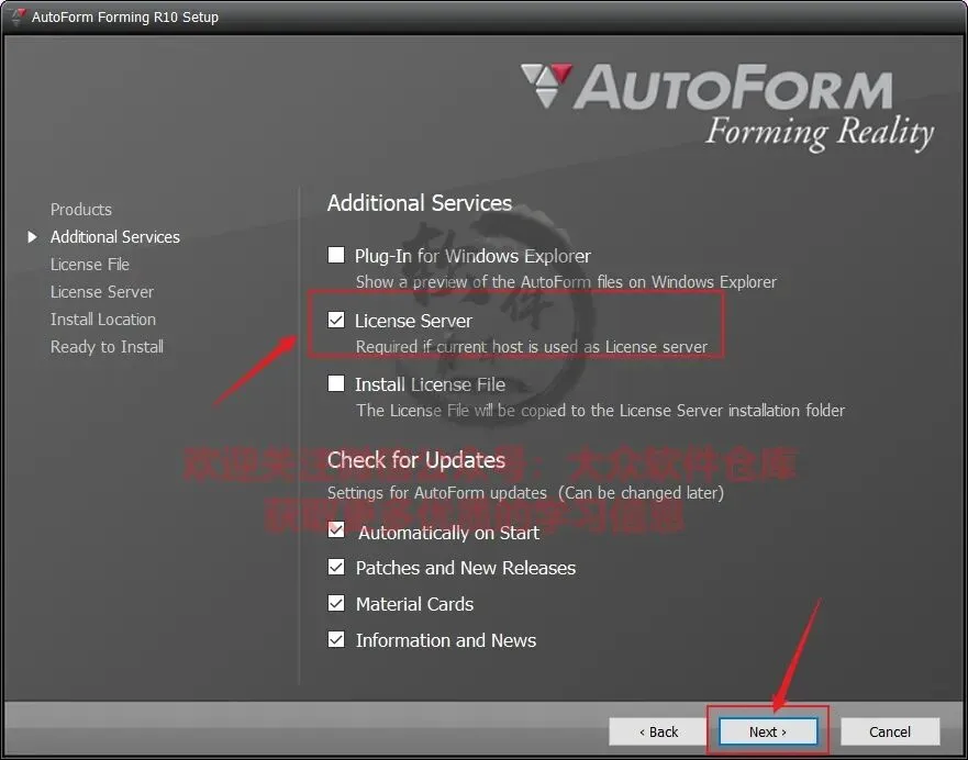 8.勾选License Server,点击Next;
