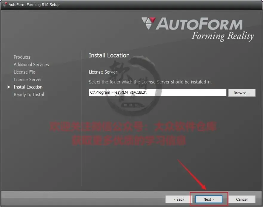 11.选择许可证管理器的安装位置,保持默认C盘即可;