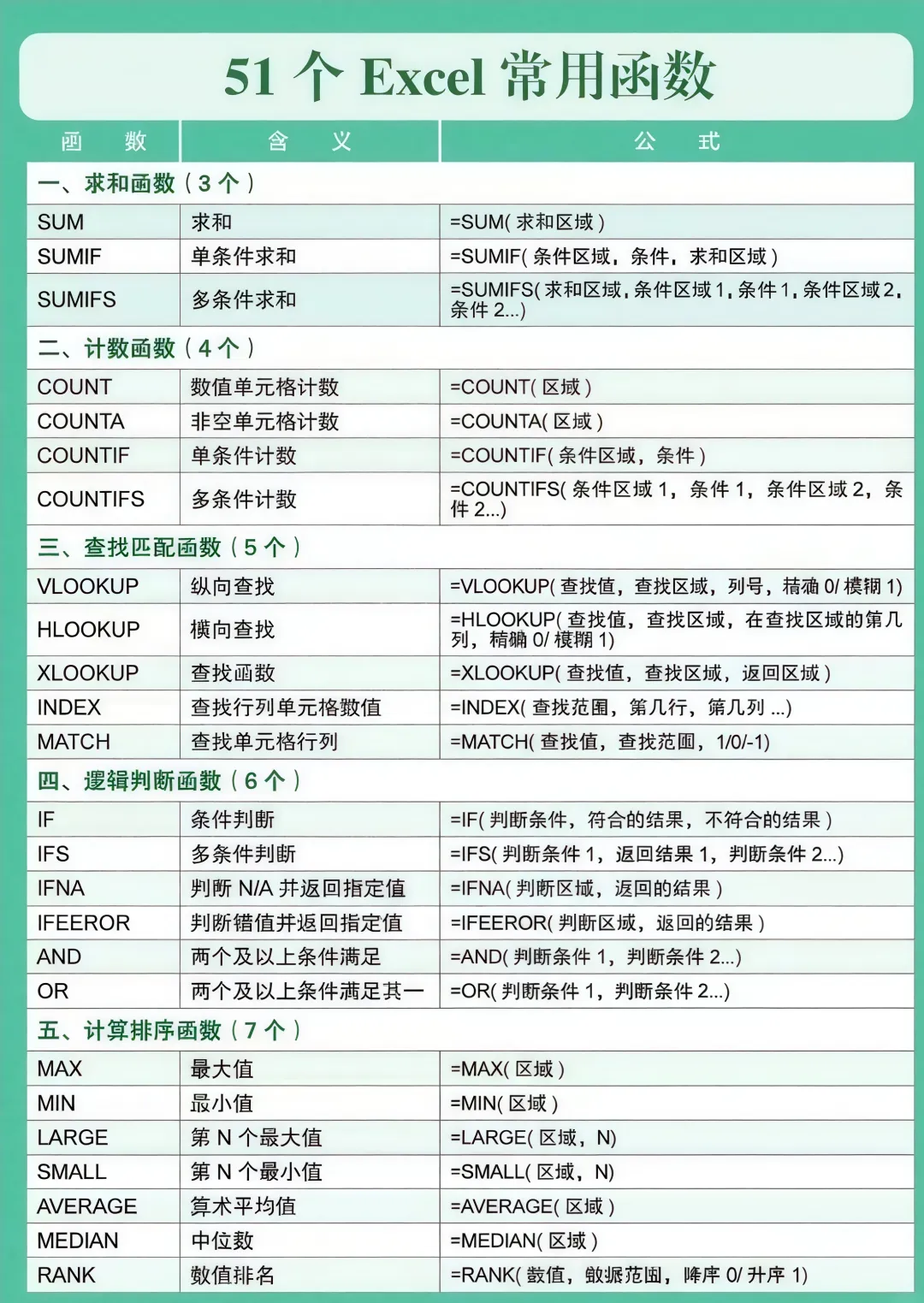别慌,这51个常用函数,覆盖90%办公场景,从今天起,让你告别无效加班,数据处理快到飞起。