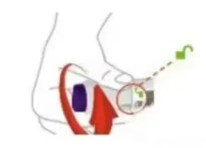 将透明底座平放在已选定的注射部位皮肤上,随后转动锁环以解锁注射笔。