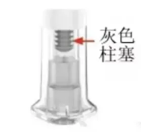 视觉确认:当灰色柱塞变为可见状态时,即表明注射已完成。
