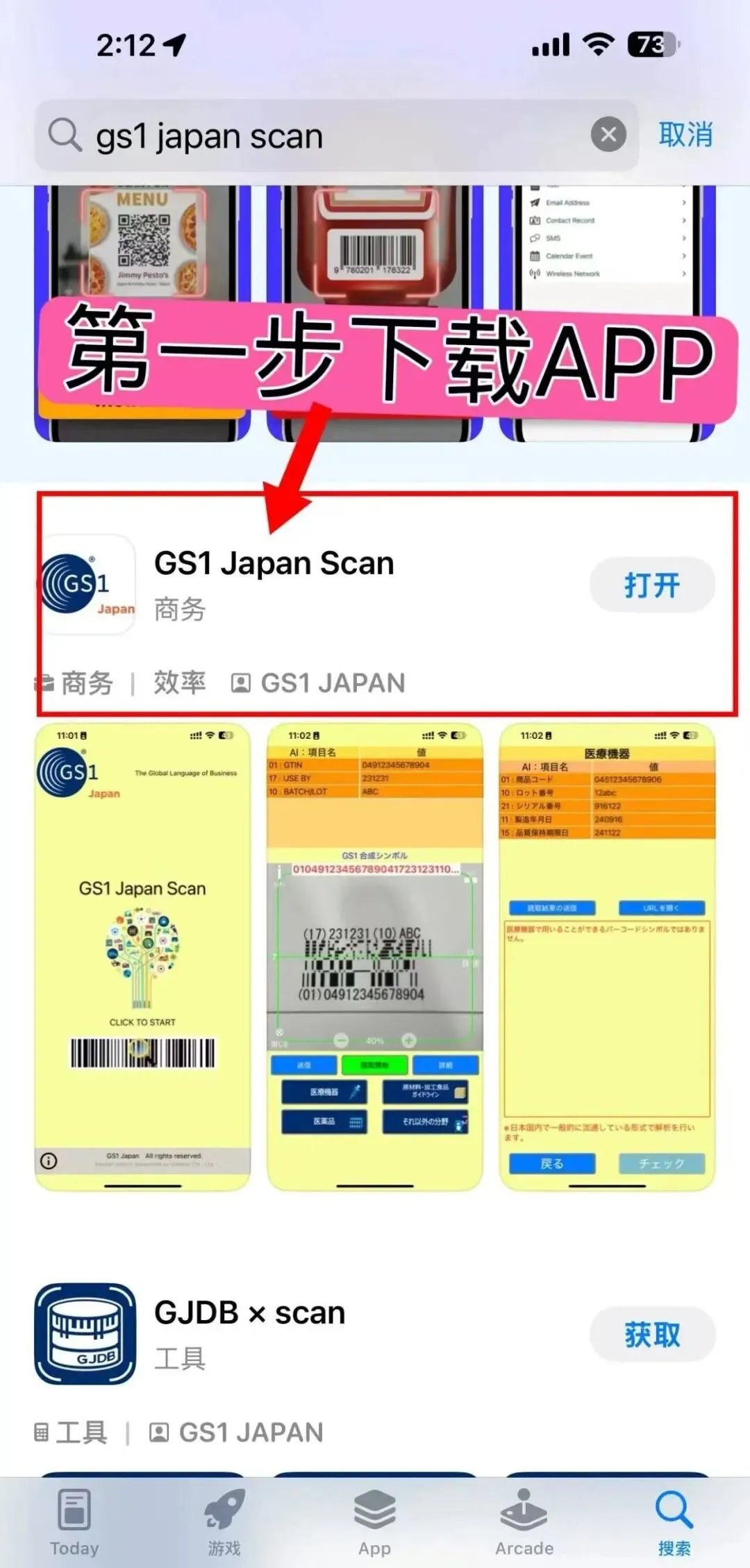 下载App:在苹果手机上搜索并下载“gs1 Japan scan”这款应用程序。