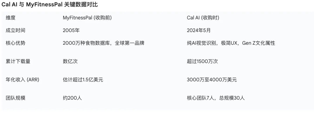 鉴于 Cal AI 当时 ARR 达到了 3000 万美元,业内普遍猜测成交价可能在数千万甚至上亿美元级别。收购完成后,Cal AI 将保持独立运营,包括 19 岁 CEO Zach 在内的 7 人团队加入 MyFitnessPal,并接入后者拥有的覆盖 2000 万种食品的大型数据库。