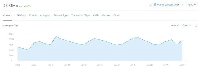 到2026年1月,仅单月销售额就达到531万美元。