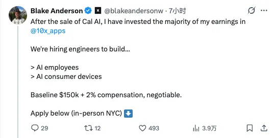 另一个联合创始人Blake Anderson在收购后把大部分收益投入了自己的新公司10x Apps,正在招聘工程师开发”AI员工”和”AI消费设备”。