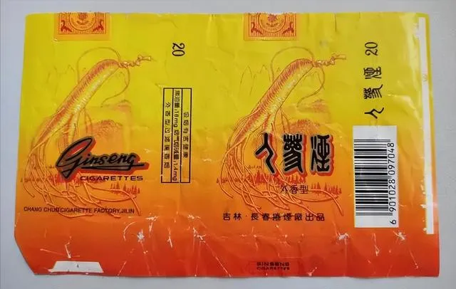这个就稀罕了,人参烟整包红,正当中画颗金黄人参,吉林产的,爷爷还拿这个当作伴手礼送亲戚,小时候我偷翻出来琢磨,琢磨半天才知道人参不是烟草味,是那股冲劲儿,家里谁生病了还能叼两口当安慰,现在想起来在那会儿就觉得新鲜。