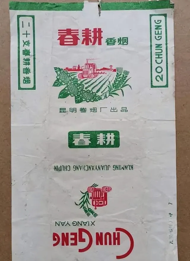 春耕香烟,白底绿字,配着拖拉机和田地,地道的农民烟,农忙时大伙一歇就传着点,两分钱一包,舍不得抽完,剩的头子攒到晚上再拿出来捻着点,味不算好,可是乡下人就认这一口。
