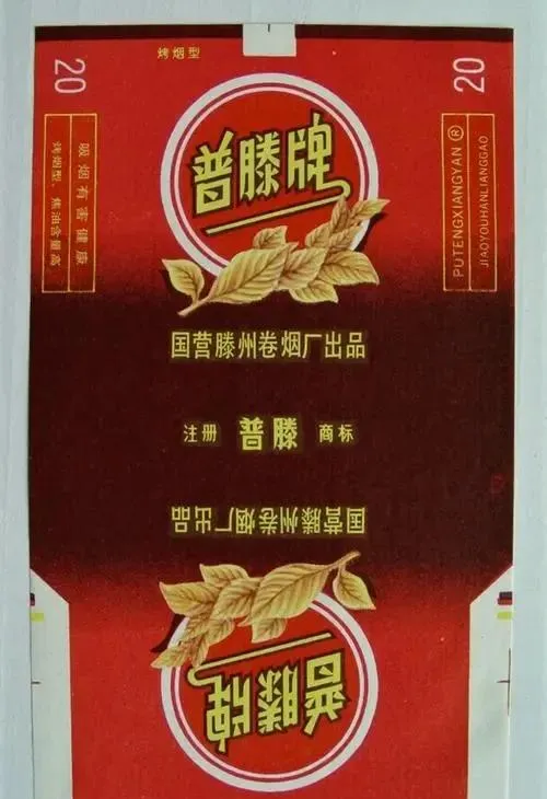 深红为底扔点麦叶子,这包叫普腾烟,队长开会常常叨着一支,说醒神,别人羡慕他分到的多,想着啥时候自己也能分根普腾来摆摆样子。
