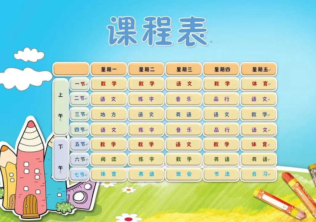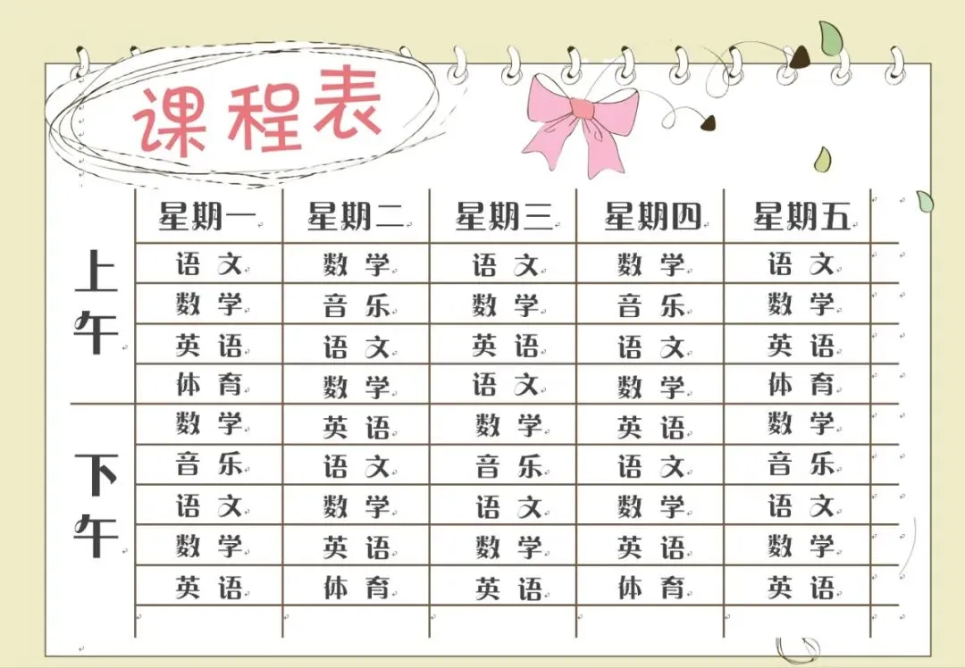 本文内容分享【课程表模板】