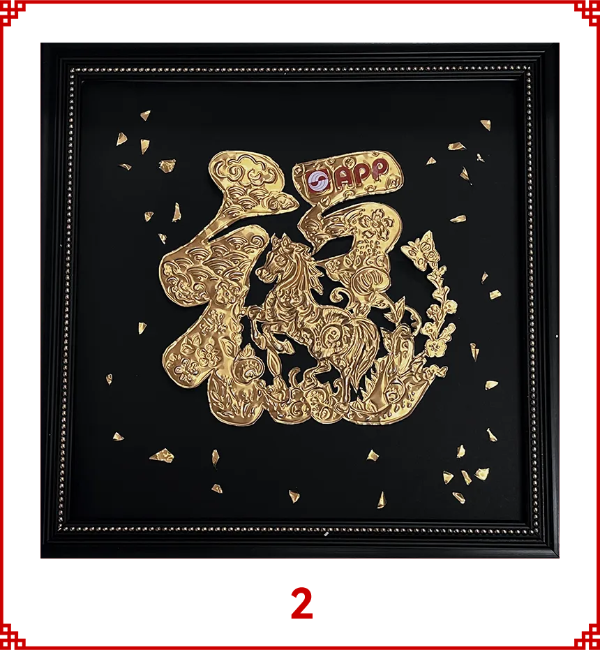 作品以锡纸为材料,结合APP的logo,运用浮雕方法,巧塑金马“福”字;图样参考传统剪纸图样,旧物新生间藏着绿色匠心。金马踏福而来,鬃毛飞扬如逐光之势,金箔碎影似星子落满征途——既是对“马到成功”的新年祈愿,亦是传统文化与现代环保理念的温暖相拥。此帧贺岁,愿金光集团稳健前行,携福运奔赴“金”彩未来!