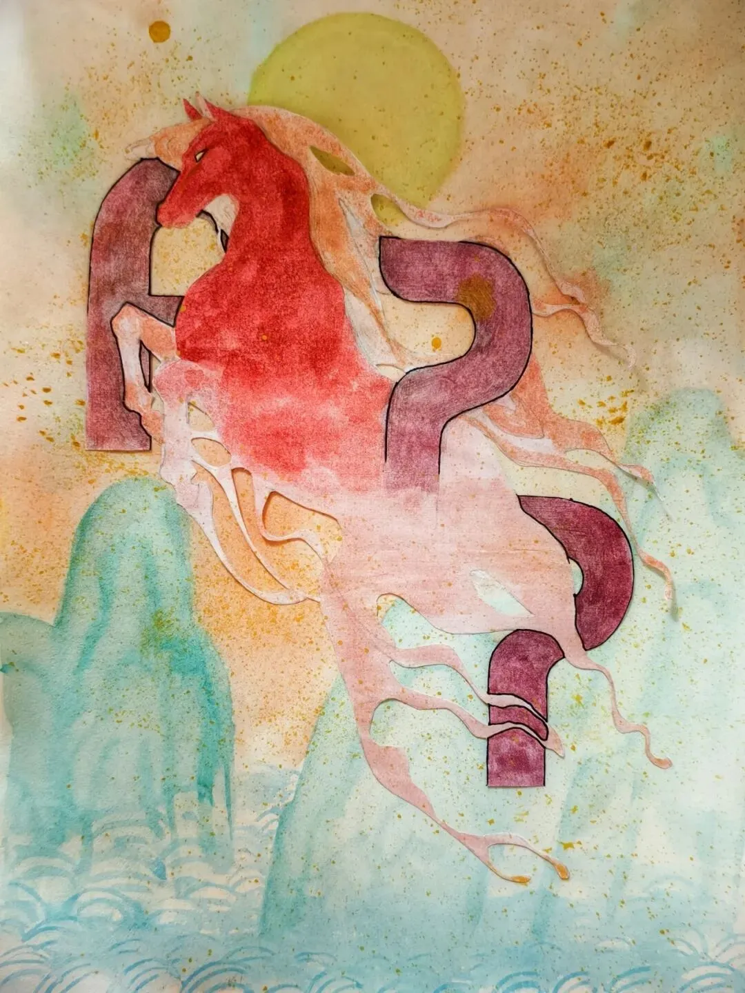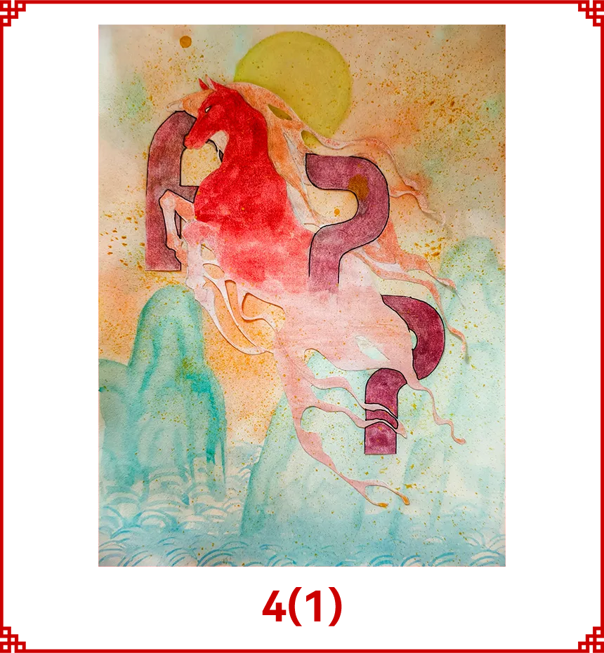本作以金光集团APP博汇纸业为创作内核,融合2026马年新春意象,以水彩叠色、肌理拼贴的艺术形式,将纸业品牌精神与骏马奔腾的祥瑞之姿相融。画面以暖红主调铺展新春盛景,奔马跃然于纸间,灵动飘逸的线条喻示纸业的柔韧质感与创新生命力,青绿山水、金辉暖阳承载新年顺遂、前程万里的祝福,致敬APP博汇纸业以纸为媒、载誉前行,马年奋蹄、共启新章。