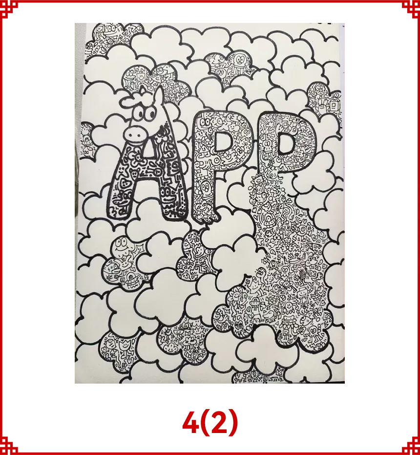 本作品以金光集团APP博汇纸业为创作核心,结合2026马年新春主题,采用潮流涂鸦艺术形式创作。将字母APP与萌态骏马形象融合,以密集童趣的涂鸦纹样填充肌理,云朵环绕营造轻盈灵动之态,既展现纸张的创意承载性与艺术表现力,也寓意APP博汇纸业在马年乘风而上、蓬勃向前,以纸为翼,绘就新春万象与品牌新篇。