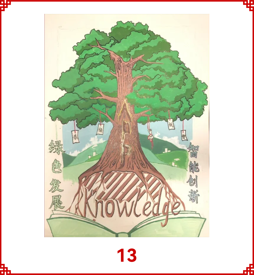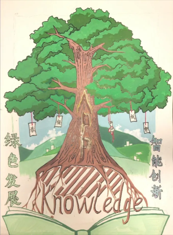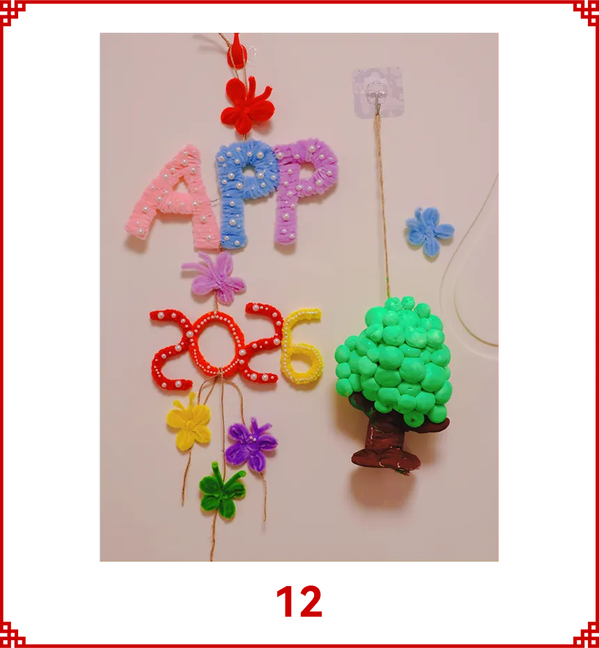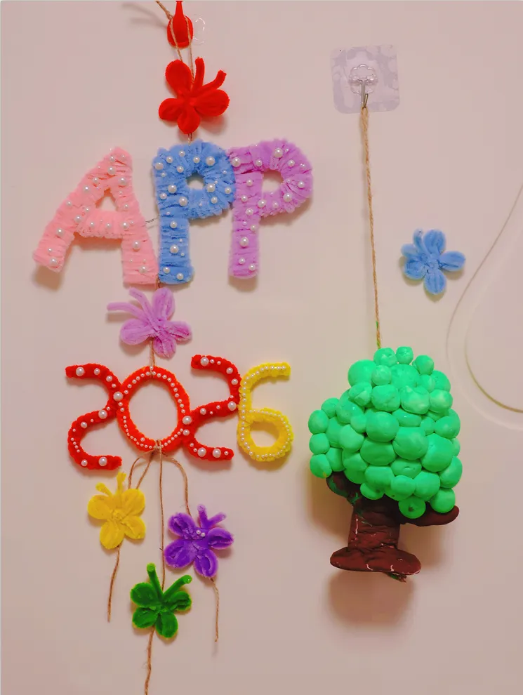 作品采用扭扭棒和粘土做成挂件,寓意金光集团APP以绿色技术创新为引擎,深化低碳转型、延伸绿色供应链,以链主企业责任引领行业协同减碳,用一张纸的绿色坚守,守护绿水青山,书写全球纸业可持续发展的金光篇章。