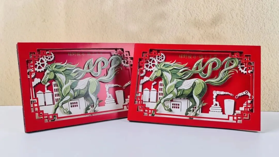 3.纸的温度:特别选用APP自产白卡纸,利用其优越的挺度和洁白度,通过多层纸雕工艺,在光影下呈现出丰富的层次感。这不仅是一份新春贺礼,更是对APP高品质纸张最直观的致敬。