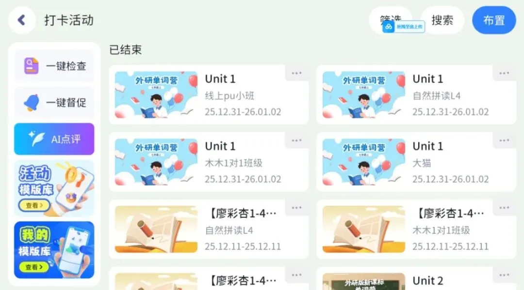 数据实时看得见:谁没交作业、谁的年卡打卡断档了、谁的单词正确率低、谁最近进步最快,点开 APP 后台一眼就清楚,再也不用熬夜做表格统计;