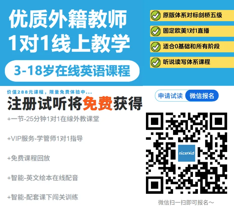 目前nicekid提供免费试听课,家长可以复制下方试听链接到浏览器打开或者长按识别官方试听码打开。