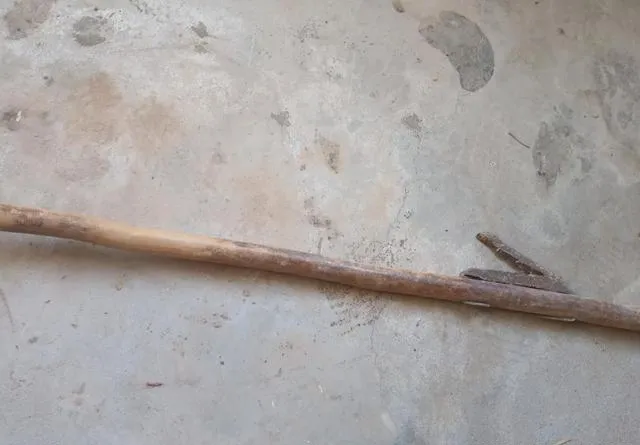 这根木棒直接叫抬杆,农村拔柴禾打棉花的时候用它,一头细一头粗,抬起来扎实有劲,拔棉花柴的时候几个人一块上手,跟打擂台一样,其实用力讲究方法,否则一上手就容易“见血”,现在田里全变机械了,这玩意儿自然没了活路。