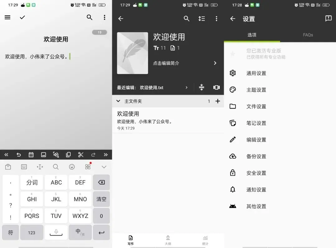 **简介:** 轻羽写作是一款专业的移动端写作工具,提供文件管理、字数统计、便签记录、昼夜切换等功能。支持Google Drive和WebDav备份,指纹锁定保护隐私,帮助创作者高效记录灵感和撰写文章。