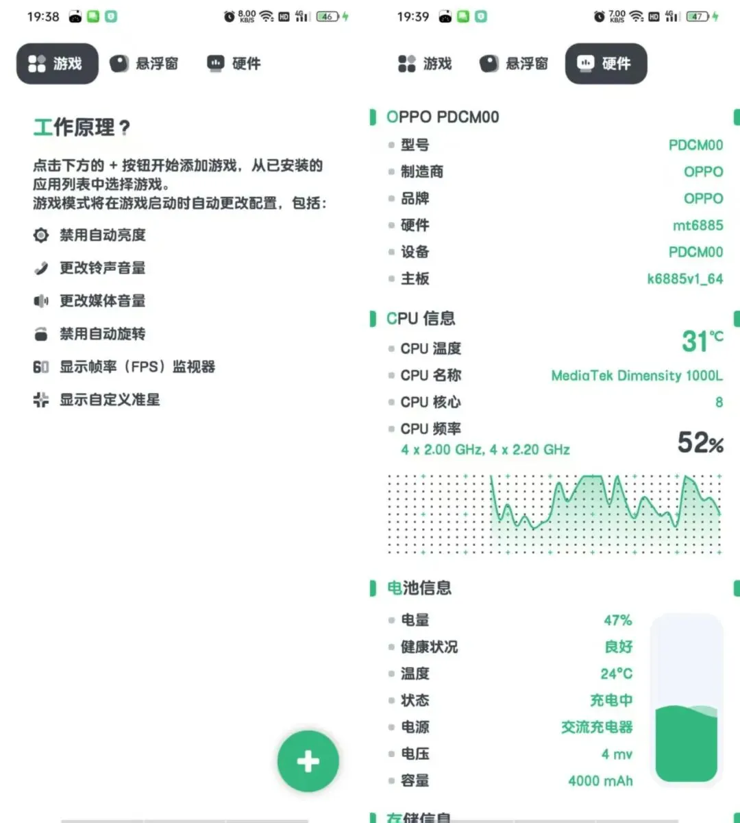 **简介:** 游戏助手是一款轻量级的安卓辅助工具,通过悬浮窗显示实时帧率、网络延迟、CPU温度等设备状态信息。支持禁止屏幕旋转、快捷开关等功能,适用于游戏场景的性能监控。