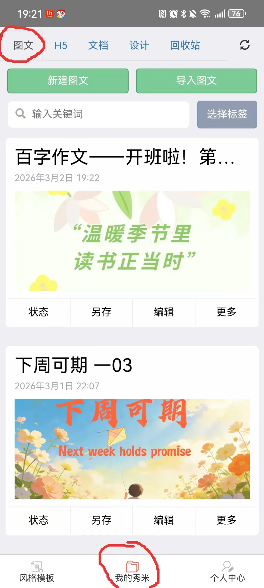 2. 在“我的图文”里找到刚保存的模板