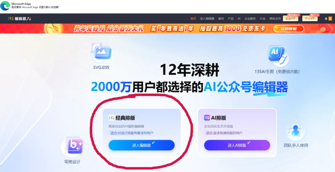 1. 打开浏览器,访问 135编辑器官网:www.135editor.com