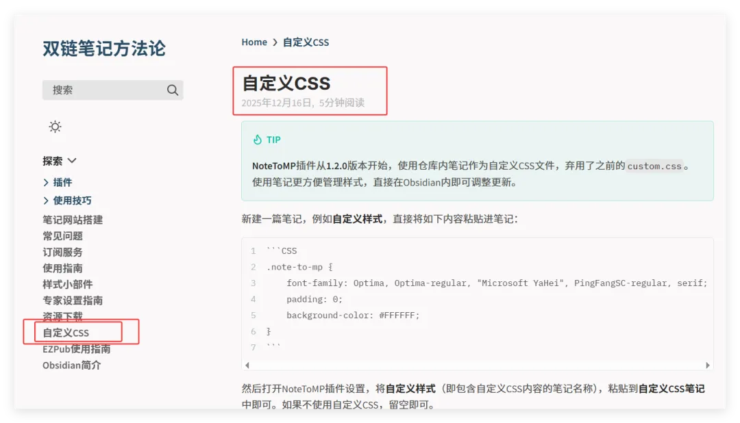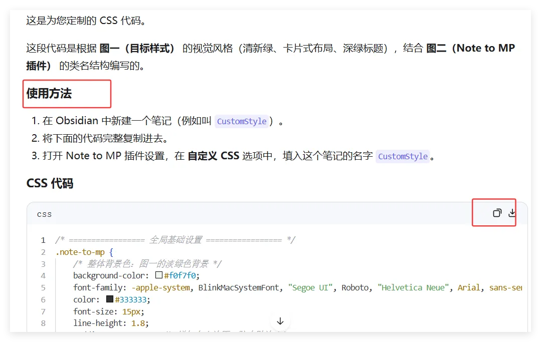 图一是我想要的公众号排版样式,图二是我想在Obsidian里面插件note tomp里自定义css的,帮我写一个css代码,按照图一的样式图二的要求