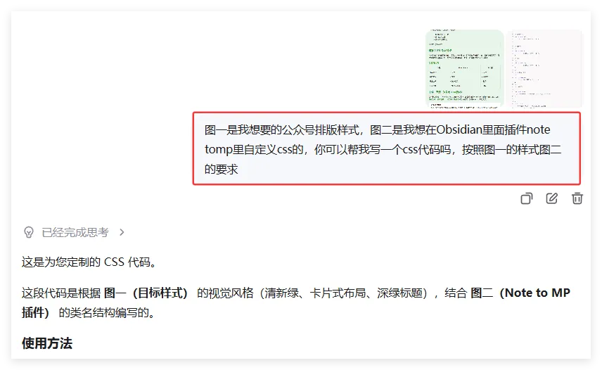 上一部我们安装完Obsidian和插件,这一步我们来根据自己想要的模板截图和插件的官方文档来让千问写CSS代码