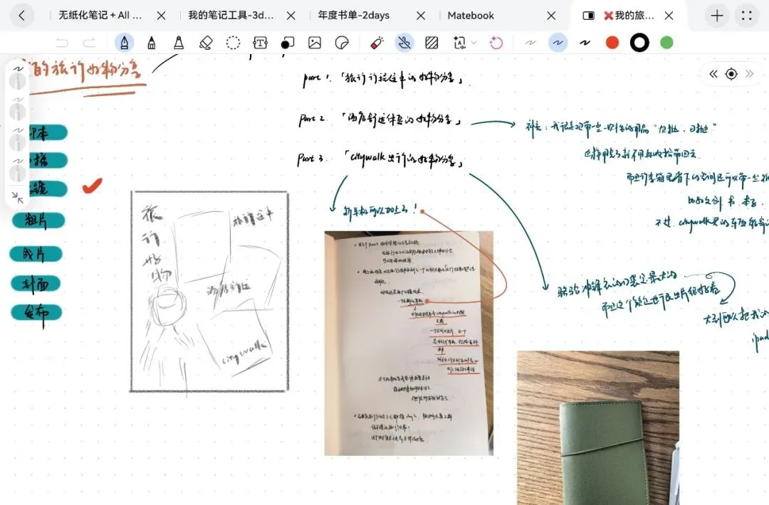 某个主题的内容,我可能有时候记在了本子上,有时候记在了手机录音里,平板就很适合作为一个最终的整理集合地。它既可以插入图片,也可以插入文档直接跳转。