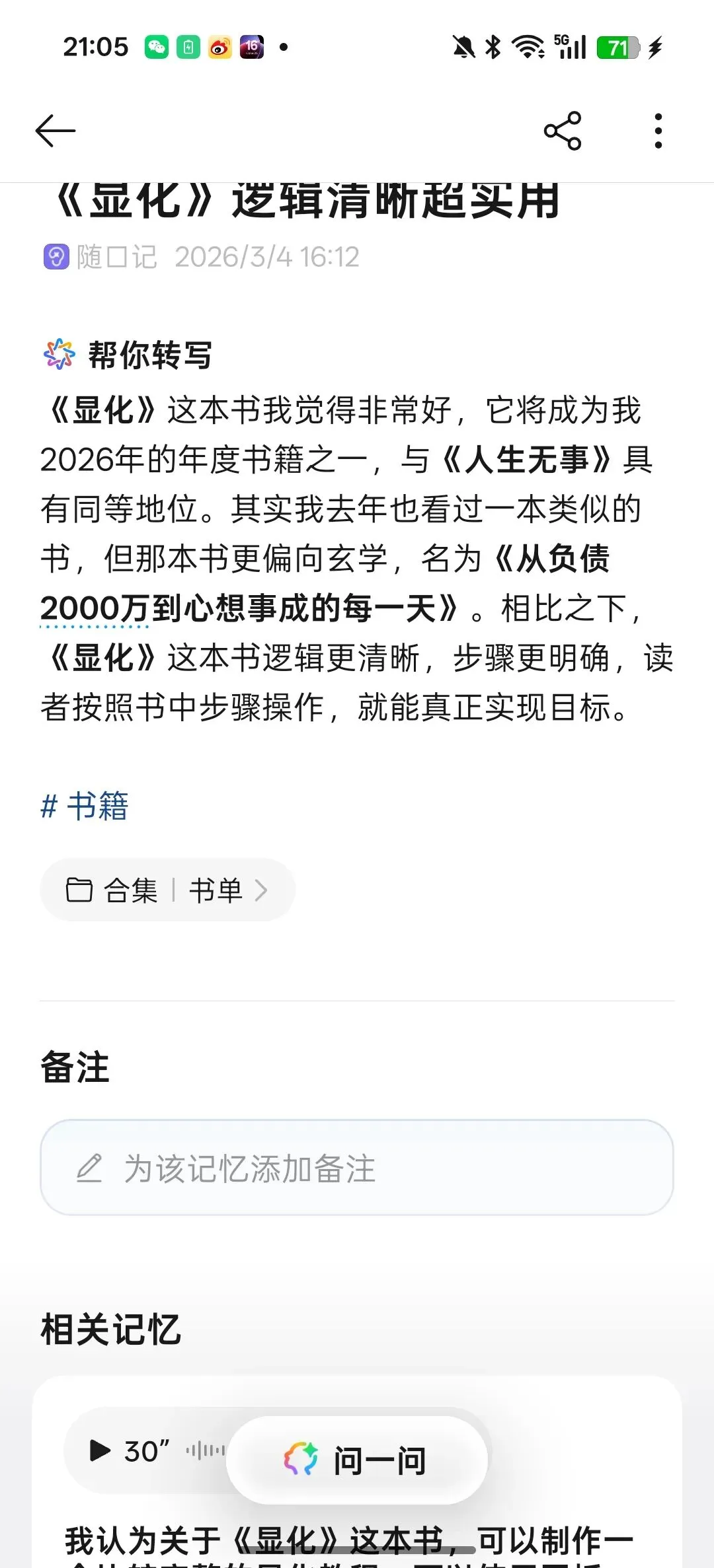 「华为笔记」基本就是我显化的人生博物馆,以后我可能会在里面添加更多的东西,也可能有了更合适的软件我会把我的人生博物馆迁移过去。