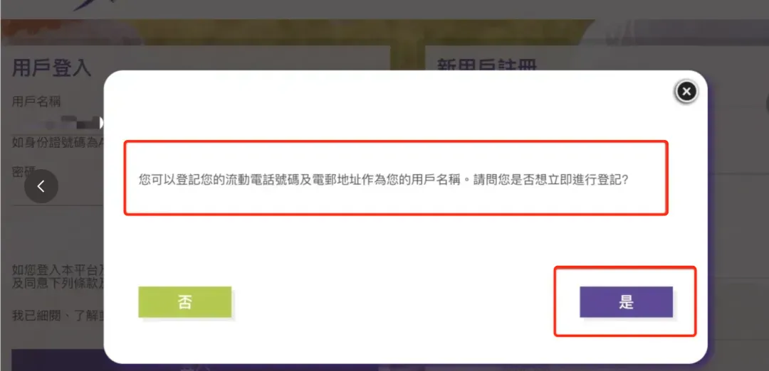 步骤6:输入”手机号码”和”电邮”作为用户名,成功登记电邮后,即可使用”电邮”作为用户名登录