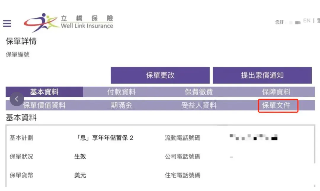 步骤7:登录后,点击”详情”查看保单信息。进入”保单文件”页面,可以查看和下载电子保单及收据