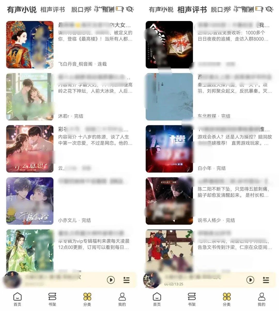 支持强大的搜索功能;包括:广播剧、有声书、有声小说、相声、小品、评书、脱口秀、戏曲、文学文艺、历史文化、国学经典、人物传记